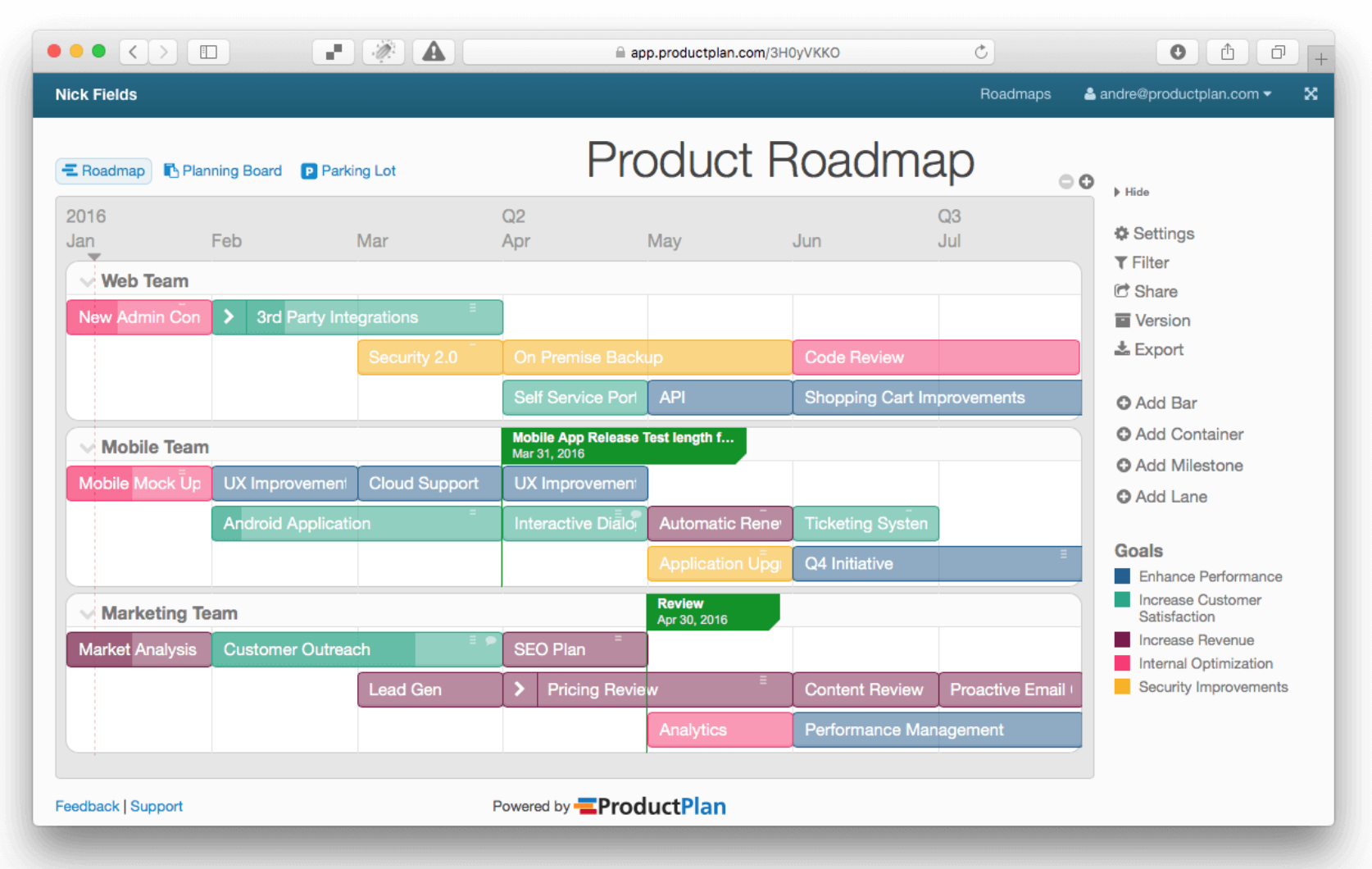 Keep in mind, that a roadmap, depending on its type, can be a product document that states requirements. It also describes the process and guides your team through development.