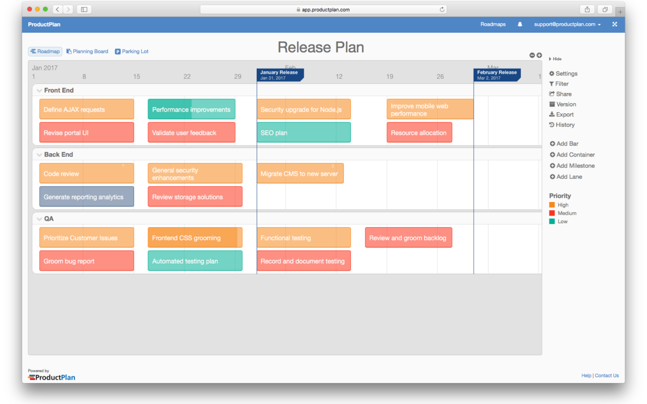 It’s a good practice to use roadmap specific tools, as they allow you to share the information quickly, update timelines or themes, add new points, and edit the whole structure. Most roadmapping tools provide templates for different roadmaps to let you start working with this document right away.